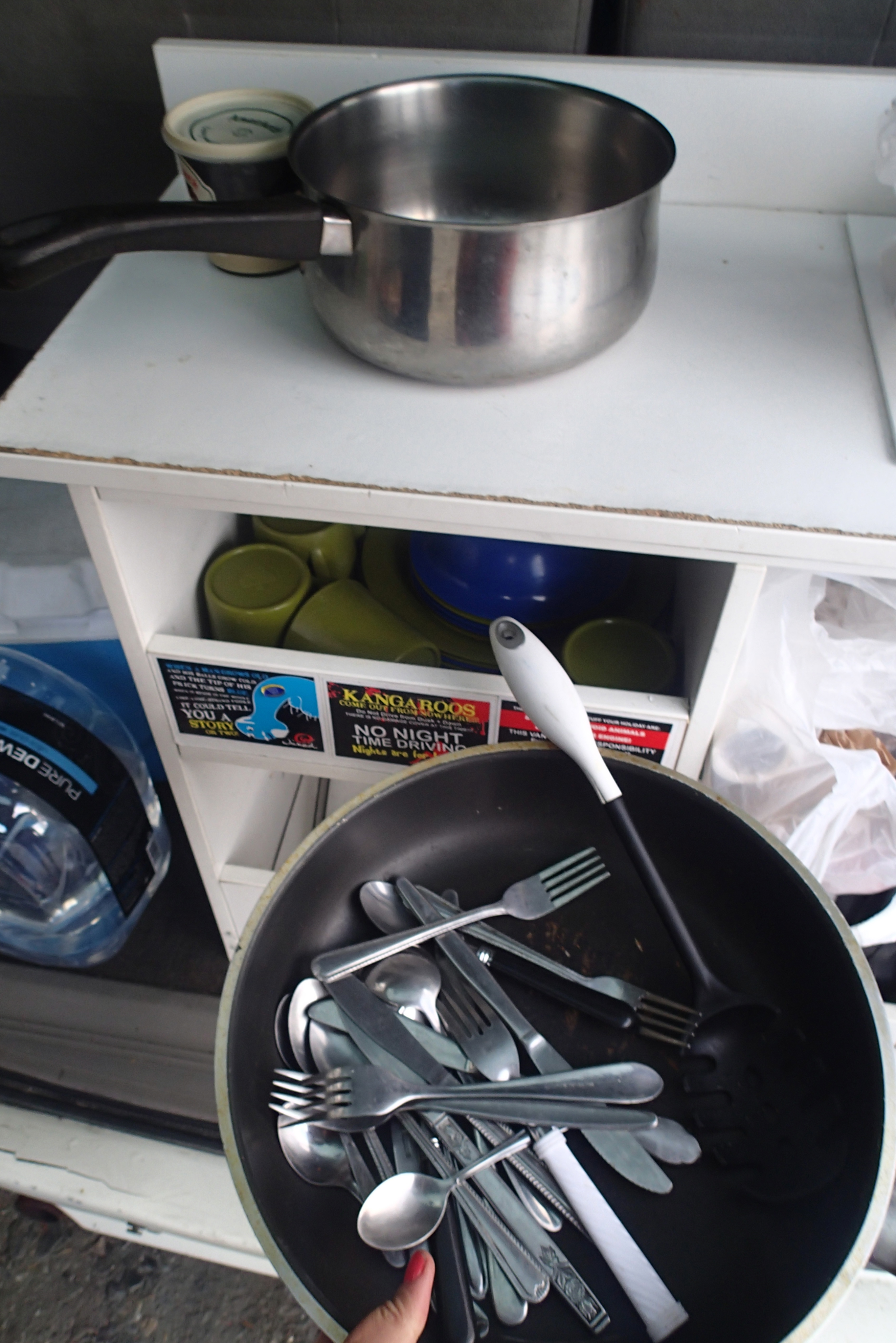 Kjøkkenutstyret mangler ikkje i bilen nei..